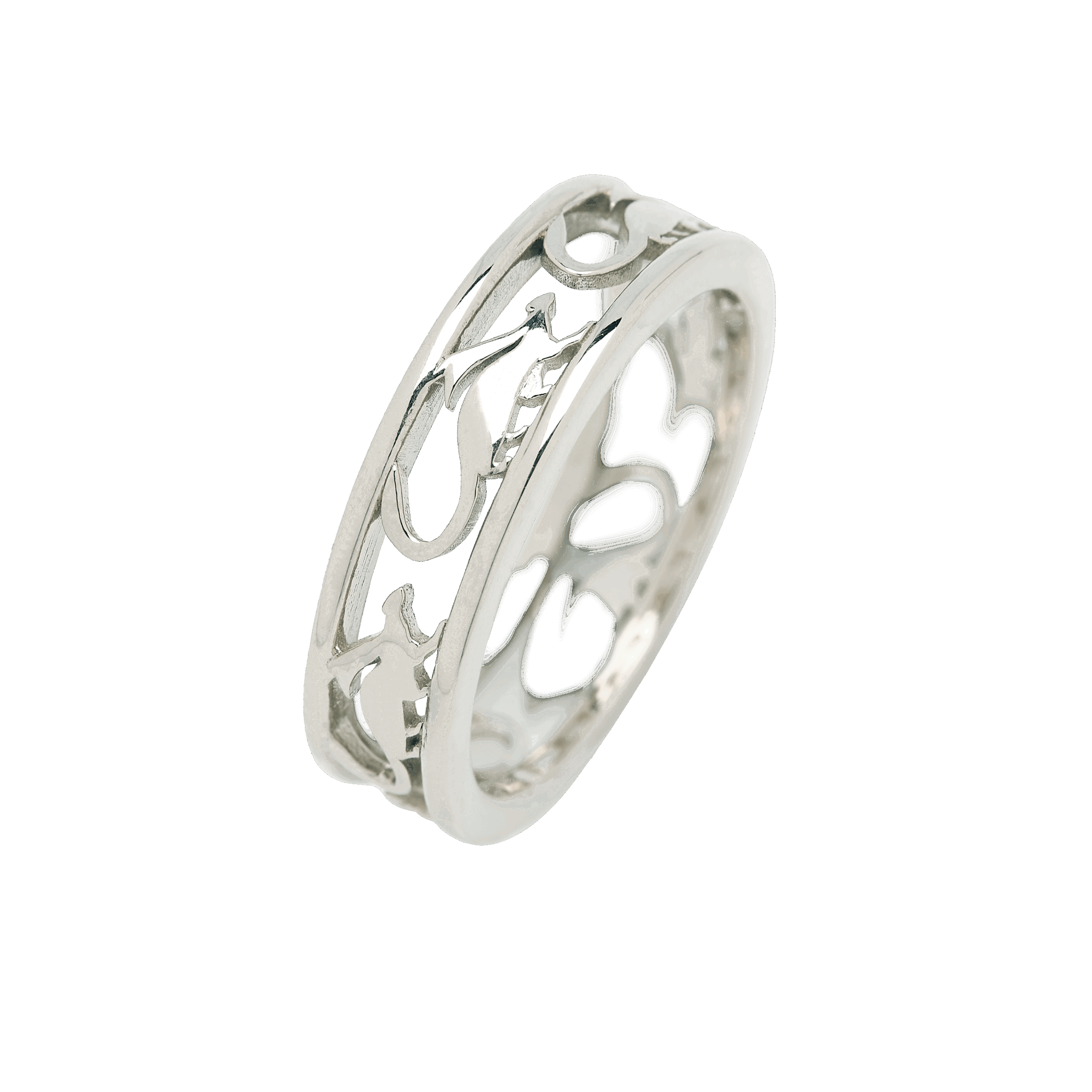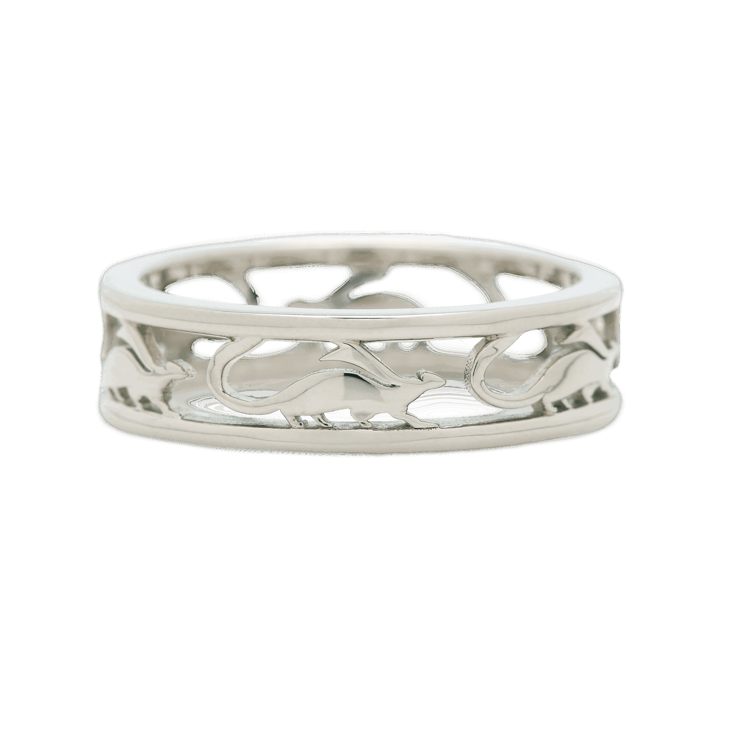 Chaque bague Hermine est minutieusement travaillée, arborant un motif délicat représentant des hermines en plein mouvement. Ces animaux semblent figés dans une danse éternelle, symbole de liberté.